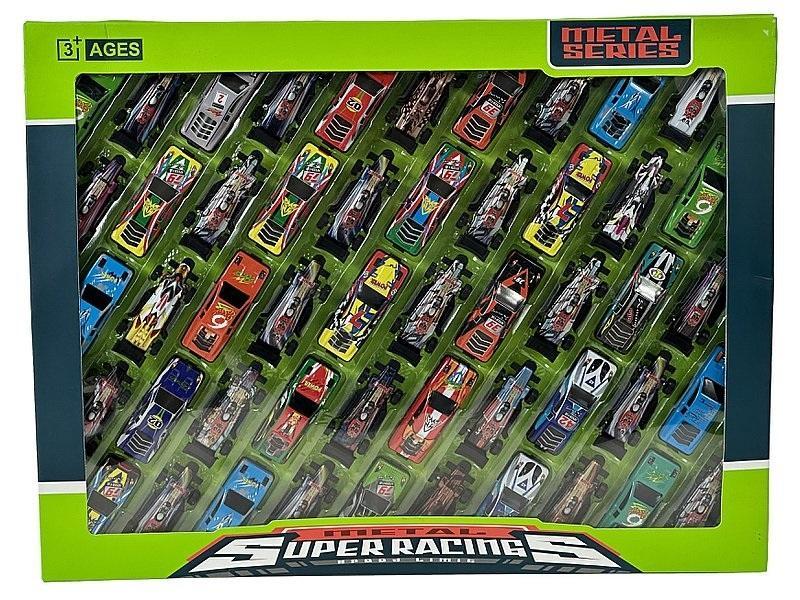 zestaw 50 autek metalowych; 46x25x3cm, W/B