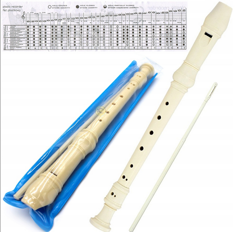 Flet prosty plastikowy - w kolorze kości słoniowej. Przydatny podczas zabawy w domu i nauki w szkole. W komplecie przyrząd do czyszczenia.