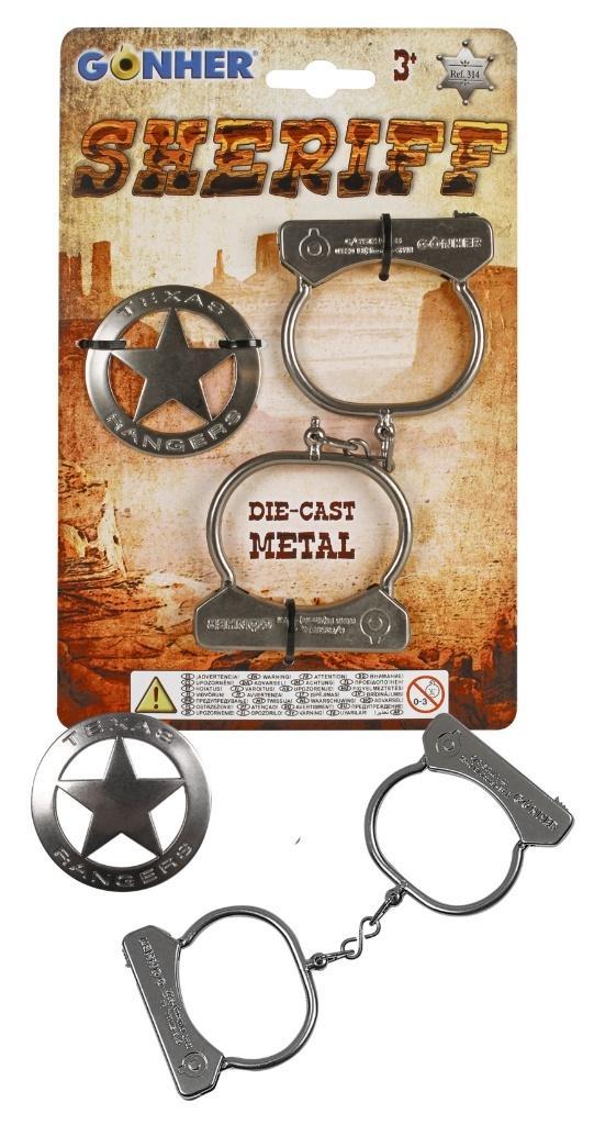Kajdanki kowbojskie metalowe w zestawie z metalową odznaką szeryfa. Szt./karton: 20