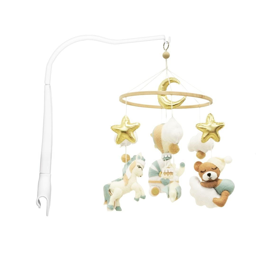 Neno Gino - Urocza karuzela z filcowymi postaciami misia, konika i balonika przenosi dziecko w świat snów i wyobraźni. Ręcznie szyte elementy oraz delikatne złote detale nadają jej wyjątkowego uroku. Stabilne mocowanie i łatwy montaż sprawiają, że to idealne połączenie stylu i funkcjonalności.