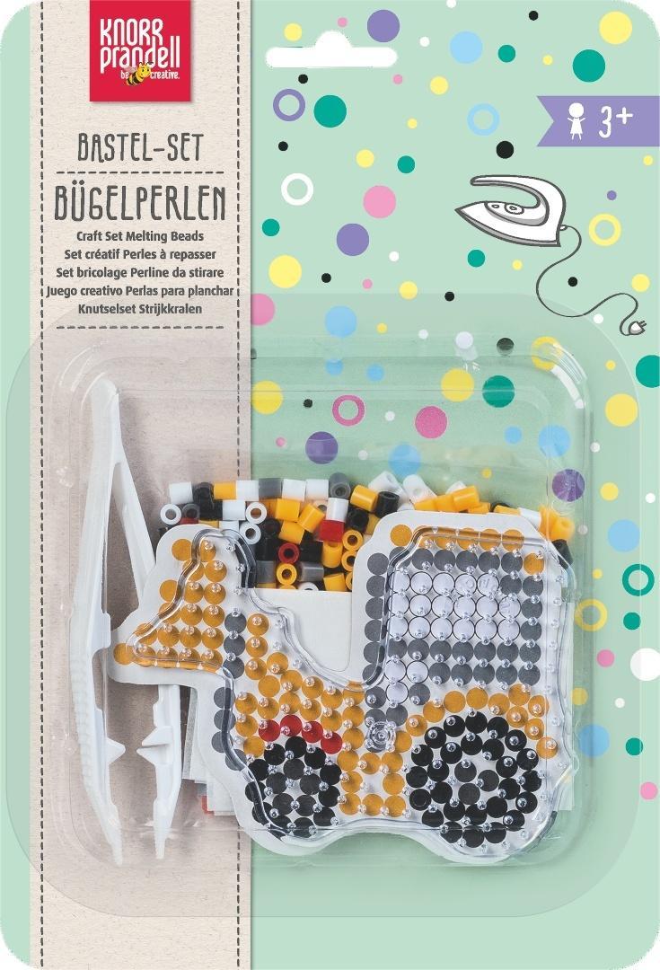 Opakowanie zawiera koraliki do zaprasowywania, z których można wykonać dwa motywy na dołączonej podkładce. Zestaw zawiera również pęsetę, papier do zaprasowywania oraz instrukcję.