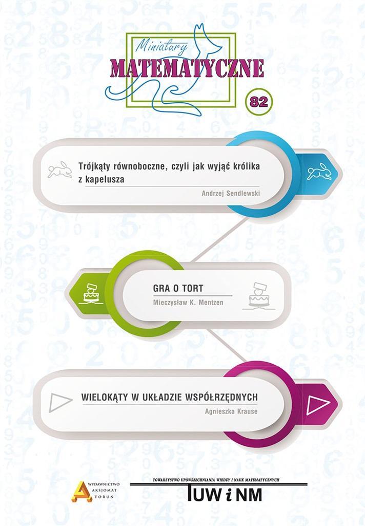 Na niniejszą książeczkę składają się trzy niezależne artykuły. Niewątpliwym bohaterem pierwszego z nich jest trójkąt równoboczny, ale nie jest to charakterystyka. Autor nie przedstawia tu rozlicznych i skądinąd bardzo ciekawych własności tej figury, lecz tropi jej czasami mocno ukrytą obecność w rozlicznych konfiguracjach geometrycznych. Nie ma żadnej przesady w tytule. Zapoznając się z kolejnymi przykładami, czujemy się jak na pokazie magii, tyle że zamiast królików z kapelusza wyłaniają się trójkąty równoboczne. A jak już je zauważymy, to pozornie chaotyczna sytuacja nabiera ładu i widać, jak znaleźć rozwiązanie. Drugi artykuł dotyczy "sprawiedliwego" podziału przysłowiowego tortu. Tort oznacza tu dowolne dobro, które nie może być matematycznie podzielone na równe części. W przypadku podziału na dwie części powszechnie znana jest procedura, która można streścić jako "jeden dzieli, drugi wybiera". Opis jej zastosowania znajdujemy już w Biblii. Tak właśnie Abraham i Lot podzielili między siebie krainę Kanaan. Sprawa komplikuje się jednak, gdy podziału należy dokonać pomiędzy większą liczbę osób lub gdy próbujemy podzielić dobra z natury niepodzielne. Jak na przykład dwóch kolegów powinno podzielić między siebie komputer i rower? Z pewnością są to problemy o dużym znaczeniu praktycznym. Można jedynie mieć wątpliwość, czy to jeszcze są problemy matematyczne. Problemami tymi zajął się na serio polski matematyk Hugo Steinhaus, który słynął z zainteresowania zadaniami leżącymi na styku matematyki, innych dziedzin wiedzy i działalności praktycznej. Śmiało można go nazwać współtwórcą współczesnej matematyki stosowanej. Artykuł w przystępnej formie przedstawia rozwiązania problemu podziału zaproponowane przez Steinhausa i innych matematyków. Trzeci, ostatni artykuł dotyczy prostokątnego układu współrzędnych. Przylgnęła do niego nazwa kartezjańskiego układu współrzędnych od nazwiska wielkiego, siedemnastowiecznego filozofa i matematyka Rene Descartes'a zwanego również Kartezjuszem. Legenda głosi, że wpadł on na pomysł układu, gdy leżąc w łóżku, obserwował muchę chodzącą po suficie i zastanawiał się, jak najprościej opisać komuś aktualne położenie muchy. Miał wówczas dojść do wniosku, że położenie najlepiej opisać, podając odległości muchy od dwóch sąsiednich ścian. Ile jest prawdy w tej legendzie? Z jednej strony wydaje się, że podobne pomysły pojawiały się to tu, to tam znacznie wcześniej. Z drugiej strony, na próżno szukać w dziele Kartezjusza o geometrii charakterystycznego obrazka z dwiema prostopadłymi osiami. Trzeba było pracy jeszcze jednego pokolenia matematyków, aby pomysły przyjęły znany nam dzisiaj kształt. Układ współrzędnych ułatwił rozwiązanie wielu problemów praktycznych, ale przede wszystkim pozwolił połączyć na nowo różne działy matematyki. Już w matematyce starożytnej Grecji można wyróżnić geometrię i arytmetykę, ale stanowiły jeszcze pewną całość. Matematycy tego czasu swobodnie używali metod geometrycznych do rozwiązania problemów arytmetycznych i odwrotnie. Wieki rozwoju oddaliły te dwa filary matematyki od siebie. Wprowadzenie układu współrzędnych pozwoliło odnaleźć nowe, twórcze powiązanie między nimi, które w krótkim czasie zaowocowało stworzeniem zupełnie nowych narzędzi matematycznych (np. w postaci rachunku różniczkowego i całkowego). Autorka artykułu pokazuje liczne przykłady elementarnych problemów geometrycznych, których rozwiązanie ułatwia zastosowanie współrzędnych, ale przedstawia też jedno z tych mniej oczywistych powiązań pomiędzy geometrią i arytmetyką, których odkrycie umożliwiło zastosowanie układu współrzędnych. Chodzi tu o twierdzenie Picka, które sprowadza obliczanie pola pewnych wielokątów do liczenia szczególnych punktów na płaszczyźnie (tzw. punktów kratowych).