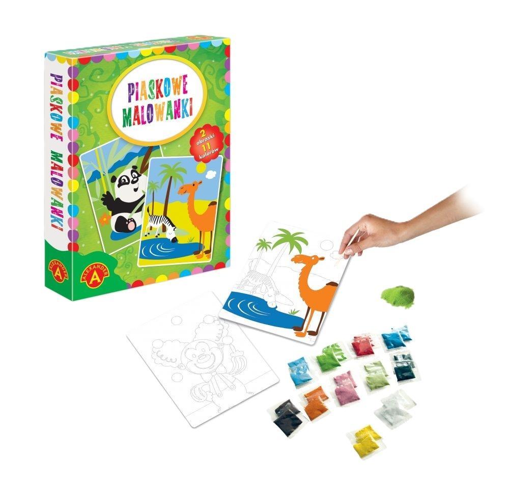 Uwielbiana przez dzieci, artystyczna zabawa malowania piaskiem, polegająca na odsłanianiu kolejno poszczególnych, naciętych elementów obrazka, tak by odkryć klejącą powierzchnię. Odsłonięte elementy posypuje się piaskiem, w kolorze zgodnym ze wzorem lub według własnej wyobraźni, tworząc piękną ilustrację.