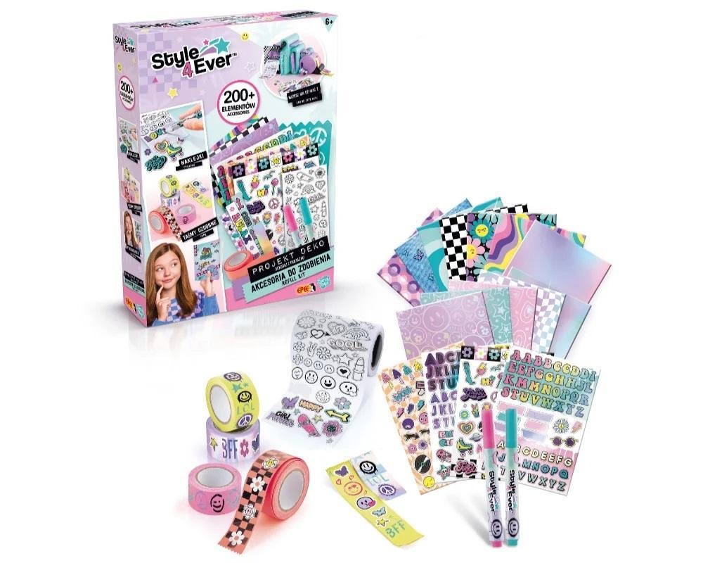 Akcesoria do zdobienia z linii Projekt Deko zapewnią jeszcze więcej zabawy i kreatywności. W zestawie znajduje się notatnik oraz szereg akcesoriów, dzięki którym stworzyć można wielokorowe elementy do ozdabiania. Akcesoria do zdobienia mogą być świetnym uzupełnieniem do innych produktów z linii Projekt Deko.