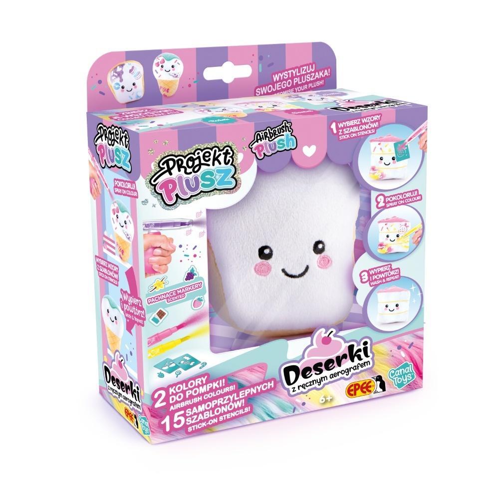 Projekt Plusz to jedyna w swoim rodzaju linia pluszaków, które możesz dekorować bez końca! Dzięki dołączonemu aerografowi nadasz swoim Deserkom unikalny wygląd, a gdy najdzie Cię ochota na zmiany możesz je po prostu wyprać i zacząć całą zabawę od nowa!