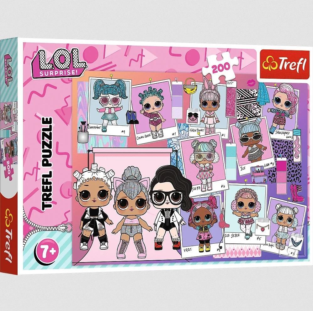 Słodkie laleczki to puzzle składające się z 200 elementów z bohaterkami bajki L.O.L. Po ułożeniu powstanie obrazek o wymiarach 48 x 34 cm. Wysoką jakość, nasycenie kolorów i bezpieczeństwo układania zapewnia kalandrowany papier odbijający światło i wykorzystanie materiałów ekologicznych.