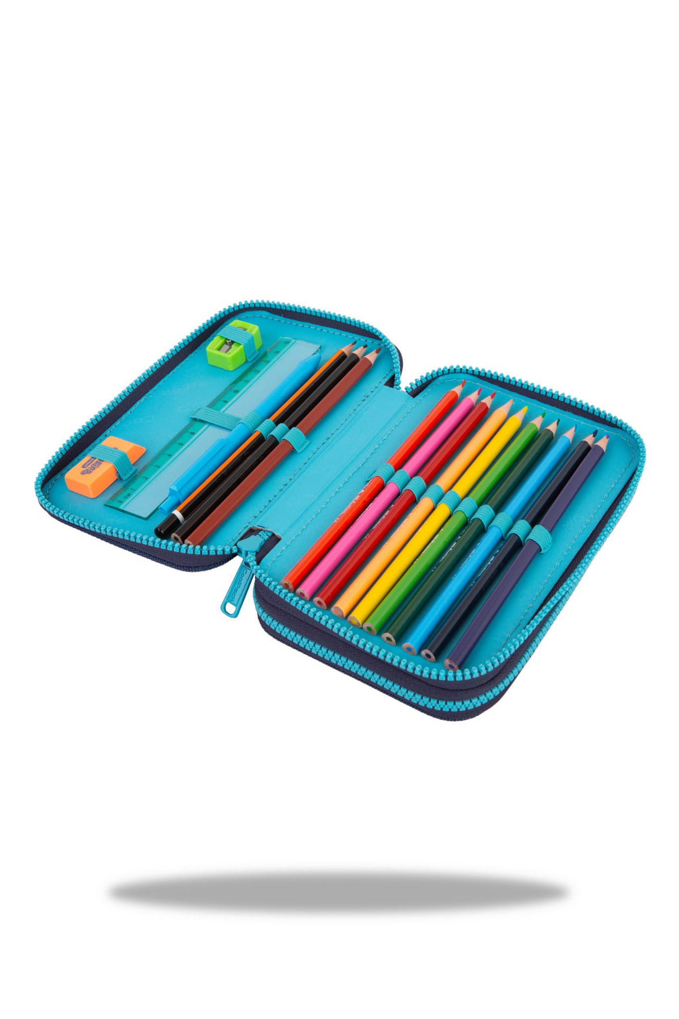 Piórnik szkolny 2-komorowy z wyposażeniem.