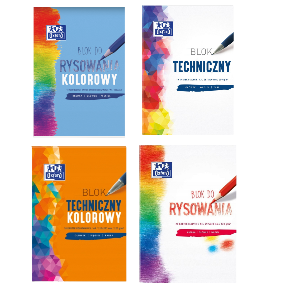 - 2 x blok techniczny kolorowy A4 Oxford