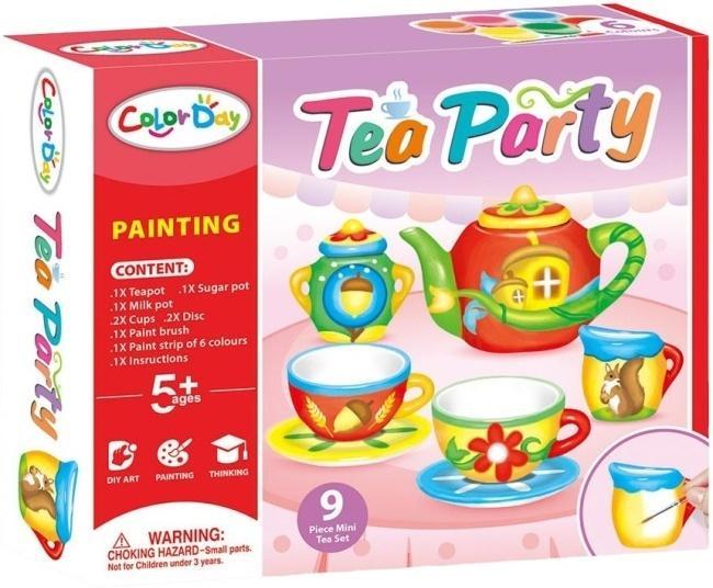 Ożyw wyobraźnię swojego dziecka dzięki zestawowi Color Day Tea Party, fantastycznej zabawce kreatywnej, która łączy zabawę w herbatę z malowaniem. Ten kompletny zestaw DIY Painting Thinking zawiera wszystko, co jest potrzebne do stworzenia jedynego w swoim rodzaju, kolorowego mini serwisu do herbaty. W pudełku znajdziesz czajniczek, cukiernicę, mlecznik oraz dwie urocze filiżanki z dwoma pasującymi spodeczkami, co łącznie daje 9 elementów ceramicznego zestawu do malowania.