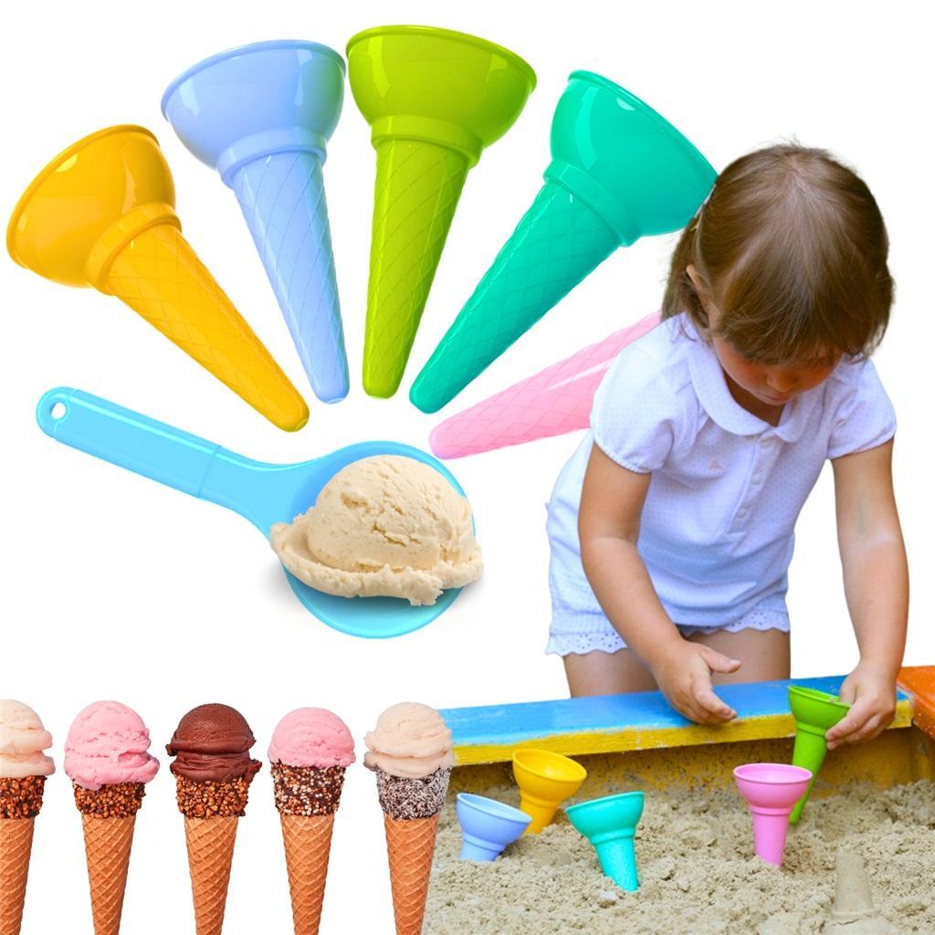 W skład "Zestawu do zabawy z piaskiem" wchodzi 5 foremek w formie "lodowego rożka" oraz łyżka do robienia gałek lodów. Zabawka wykonana jest z wysokiej jakości i bezpiecznego, bezwonnego tworzywa sztucznego.