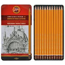 Komplety ołówków grafitowych serii 1500 w metalowej kasetce. W skład jednego zestawu wchodzi 12 ołówków o różnych stopniach gradacji.