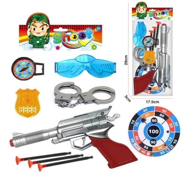 Przygotuj się na ekscytującą misję z naszym kompletnym zestawem dla małego stróża prawa! Ten wszechstronny zestaw zapewni godziny kreatywnej i bezpiecznej zabawy. W jego skład wchodzi realistyczny pistolet na strzałki z przyssawkami, umożliwiający celne strzelanie do dołączonej tarczy z punktacją. Dla pełnego bezpieczeństwa podczas zabawy, zestaw zawiera również stylowe okulary ochronne. Młody detektyw znajdzie tu także solidne kajdanki oraz lśniącą odznakę, która doda autentyczności każdej odgrywanej roli. Niezbędnym elementem wyposażenia jest działający kompas, który pomoże w orientacji w terenie podczas tajnych operacji. Całość zapakowana jest w estetyczne opakowanie, idealne na prezent. To doskonały wybór dla dzieci powyżej 3 roku życia, rozwijający wyobraźnię, precyzję i umiejętności społeczne poprzez wcielanie się w rolę bohatera.