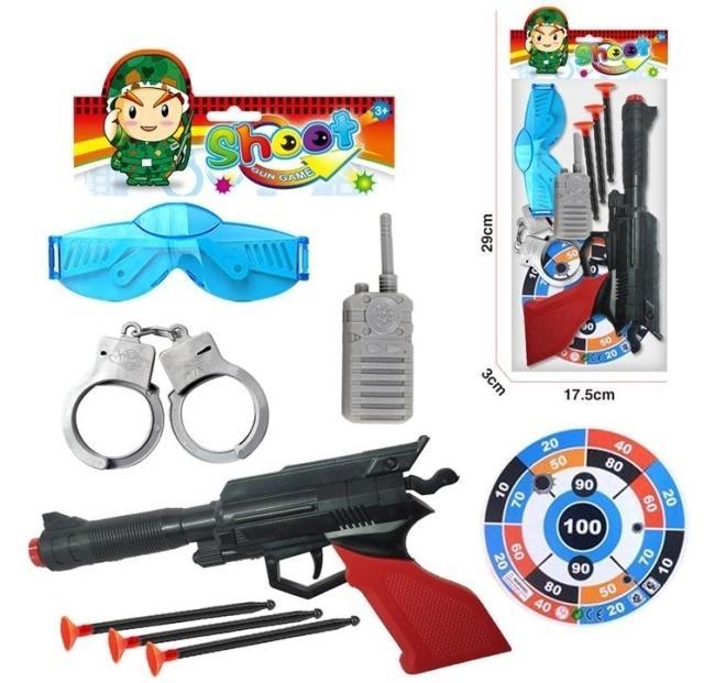 Ten bogaty zestaw militarno-policyjny to doskonały wybór dla każdego dziecka, które marzy o pilnowaniu porządku i łapaniu przestępców. Głównym elementem kompletu jest pistolet o futurystycznym wyglądzie, który strzela bezpiecznymi pociskami zakończonymi gumowymi przyssawkami. Dołączona do zestawu kolorowa tarcza z punktacją umożliwia organizowanie zawodów w strzelaniu do celu, co rozwija koordynację wzrokowo-ruchową oraz cierpliwość. Aby zabawa była jeszcze bardziej angażująca, dziecko ma do dyspozycji niezbędne atrybuty funkcjonariusza: srebrne kajdanki do zatrzymywania rzezimieszków, krótkofalówkę do komunikacji z bazą oraz niebieskie gogle ochronne, które dodają profesjonalnego wyglądu. Zabawka jest lekka, poręczna i wykonana z bezpiecznych materiałów, co gwarantuje wiele godzin kreatywnej zabawy zarówno w domu, jak i na świeżym powietrzu.