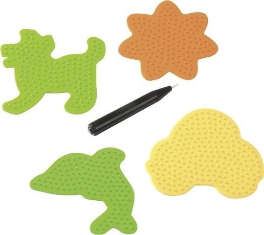 Zestaw zawiera 4 specjalne płytki do koralików do zaprasowywania oraz pęsetę. Koraliki można dokupić oddzielnie.
