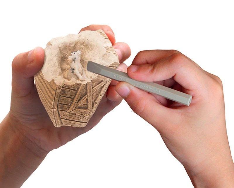Krowa, świnia, koń, kaczka czy królik - kto skrywa się w tym mini zestawie do kopania KOSMOS? 12 zwierząt gospodarskich czeka na uwolnienie z gipsowej stodoły. Który znajdziesz? To niespodzianka! Wystarczy zwilżyć miękką gąbkę, a dzieci w wieku od 5 lat mogą wykopać dłutem jedną z 12 małych figurek zwierząt. Instrukcja dołączona do małego zestawu KOSMOS (może nie być dostępna w języku polskim) dokładnie wyjaśnia, która technika sprawdza się najlepiej. Zabawny prezent, gadżet urodzinowy lub pamiątka pomiędzy kolekcjonowaniem i zabawą!