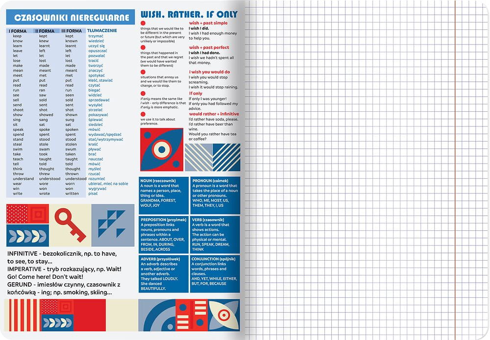 - Na wewnętrznych stronach okładek znajdują się przydatne ściągi dla każdego przedmiotu