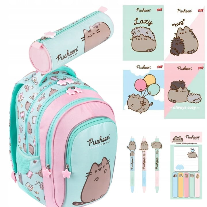 Zestaw szkolny 1 3 klasa DLA DZIEWCZYNKI Z KOTKIEM Plecak Pusheen Mint